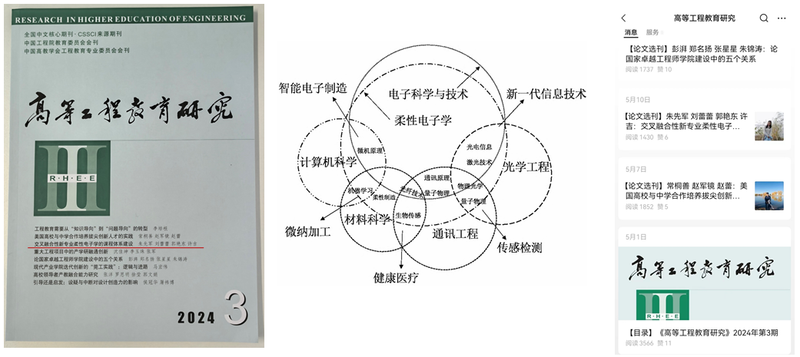 近日,我院朱先軍副教授、劉蕾蕾教授、郭艷東副教授和許吉副教授等人,在國(guó)內(nèi)工程教育研究權(quán)威期刊《高等工程教育研究》上發(fā)表題為《交叉融合性新專(zhuān)業(yè)柔性電子學(xué)的課程體系建設(shè)》的教學(xué)改革研究論文。論文闡述了柔性電子學(xué)專(zhuān)業(yè)多學(xué)科交叉融合性的特點(diǎn),著重介紹了我院在面向交叉融合的前沿學(xué)科需求,以學(xué)生為中心,以產(chǎn)業(yè)需求為導(dǎo)向、突出多學(xué)科交叉融合的特點(diǎn)、引入前沿技術(shù)進(jìn)行柔性電子人才培養(yǎng)的課程體系構(gòu)建和優(yōu)化的思路,重點(diǎn)介紹了專(zhuān)業(yè)核心課程的特色和實(shí)踐教學(xué)環(huán)節(jié)設(shè)置,詳細(xì)介紹了傳統(tǒng)課程融合交叉學(xué)科特色的教學(xué)內(nèi)容改革。柔性電子學(xué)是面向國(guó)家重大戰(zhàn)略需求的跨學(xué)科交叉融合領(lǐng)域設(shè)立的新專(zhuān)業(yè),我校于2021年向教育部申報(bào)設(shè)立柔性電子學(xué)專(zhuān)業(yè)并成功獲批,于2022年9月招收第一屆本科生。我院柔性電子學(xué)專(zhuān)業(yè)師資隊(duì)伍建設(shè)、課程體系建設(shè)和學(xué)科發(fā)展等如火如荼的開(kāi)展,并取得了良好實(shí)效。柔性電子學(xué)專(zhuān)業(yè)課程體系建設(shè)相關(guān)研究受到了《高等工程教育研究》期刊編委的青睞,刊發(fā)在2024年第3期“新工科研究與實(shí)踐”專(zhuān)欄,并作為選文在其公眾號(hào)上推廣,受到了國(guó)內(nèi)高等教育界學(xué)者們關(guān)注。該教學(xué)研究成果得到南京郵電大學(xué)本科教改項(xiàng)目和江蘇省高等教育教學(xué)改革研究項(xiàng)目
