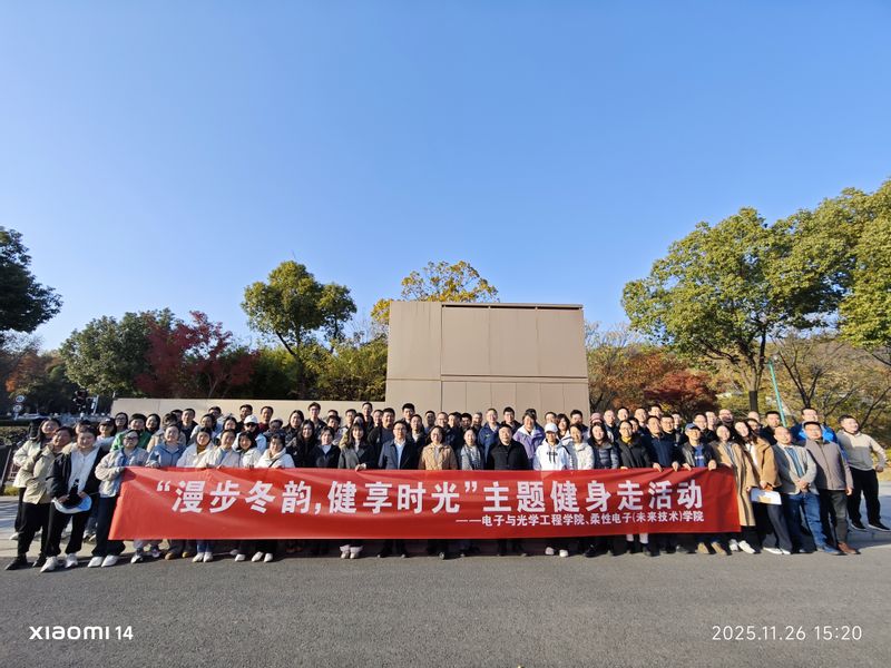 為迎接學(xué)院黨代會(huì)勝利召開(kāi),讓全體教職工在自然中放松身心、在運(yùn)動(dòng)中凝聚力量,11月26日下午,電子與光學(xué)工程學(xué)院、柔性電子(未來(lái)技術(shù))學(xué)院工會(huì)精心策劃“漫步冬韻,健享時(shí)光”主題健身走活動(dòng),組織全院教師走進(jìn)羊山公園,共赴一場(chǎng)冬日美景與健康活力的雙向之約。下午三點(diǎn),參與活動(dòng)的教師們齊聚公園入口廣場(chǎng),臉上洋溢著期待與喜悅。學(xué)院黨委書(shū)記黃麗亞致辭,她表示,此次健身走活動(dòng)既是響應(yīng)“全民健身”號(hào)召、關(guān)愛(ài)教職工身心健康的暖心舉措,也是學(xué)院以團(tuán)結(jié)奮進(jìn)風(fēng)貌迎接黨代會(huì)的生動(dòng)實(shí)踐。“希望大家在漫步中欣賞冬景、在同行中增進(jìn)情誼,把運(yùn)動(dòng)帶來(lái)的活力與激情,轉(zhuǎn)化為教書(shū)育人、干事創(chuàng)業(yè)的強(qiáng)大動(dòng)力,共同為學(xué)院高質(zhì)量發(fā)展蓄力賦能。”致辭結(jié)束后,教師們邁著矯健的步伐有序啟程,沿著蜿蜒的環(huán)湖步道展開(kāi)了一場(chǎng)與冬日的親密邂逅。活動(dòng)結(jié)束后,教師們?cè)诠珗@入口處集體合影。此次健身走活動(dòng)全程約5公里,路程雖不算長(zhǎng),卻讓老師們?cè)诜泵Φ墓ぷ髦啵叱隽诵@、走進(jìn)了自然,既鍛煉了身體、舒緩了壓力,更增進(jìn)了彼此間的溝通與情誼。電子與光學(xué)工程學(xué)院、柔性電子(未來(lái)技術(shù))學(xué)院工會(huì)未來(lái)將繼續(xù)聚焦教職工需求,秉持“服務(wù)教職工、凝聚向心力”的宗旨,組織更多形式